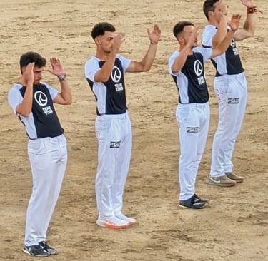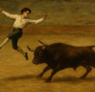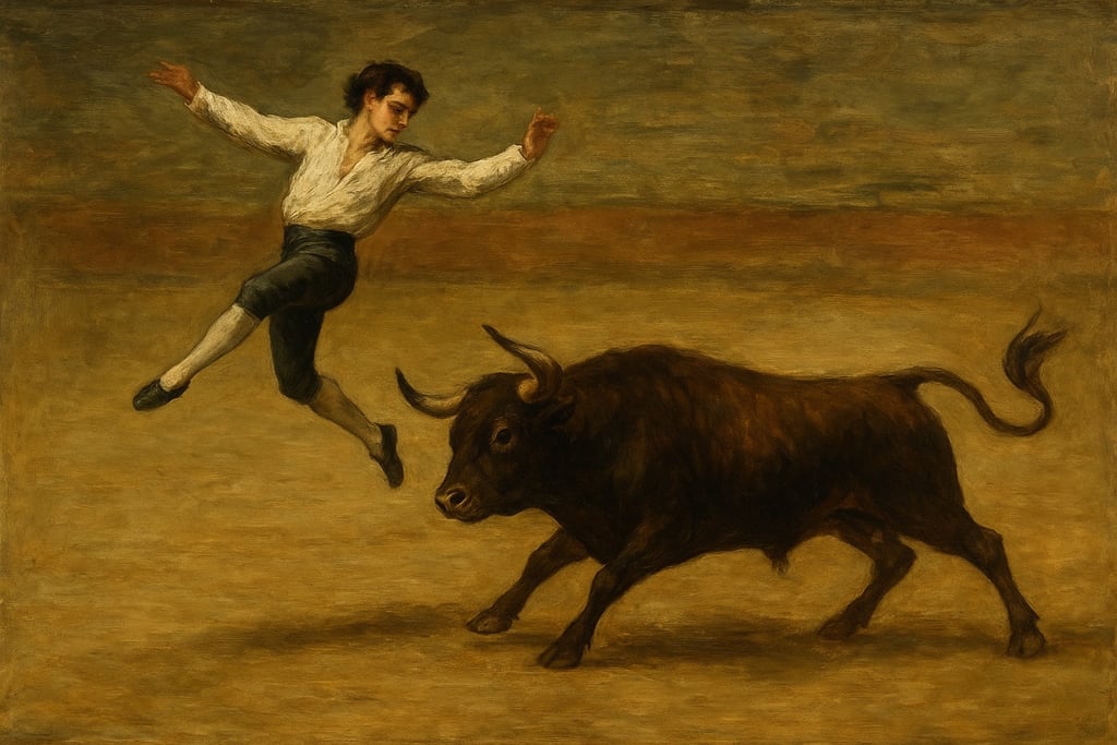 Los recortes son una de las formas más antiguas de espectáculos taurinos, y en las últimas décadas han resurgido como alternativa sin sangre a la corrida. La palabra recortes viene del verbo recortar. Recortar al toro significa cortarle el paso, y eso es exactamente lo que hacen los recortadores: se plantan delante de un toro que embiste y lo esquivan con un timing y una destreza brutales. Sus trucos tienen nombre: el recorte, un quiebro rápido delante de la cara del toro; el quiebro, un giro de cadera para salir de lado; y el susto, la jugada fallida que nadie quiere ver. Luego vienen los saltos aéreos: salto del ángel, tirabuzón, y mortal. Cada uno un órdago en el aire. El resultado: una mezcla de peligro, gimnasia y teatro. El público recibe la adrenalina, el toro se queda con la vida. El evento es parte circo, parte deporte extremo.